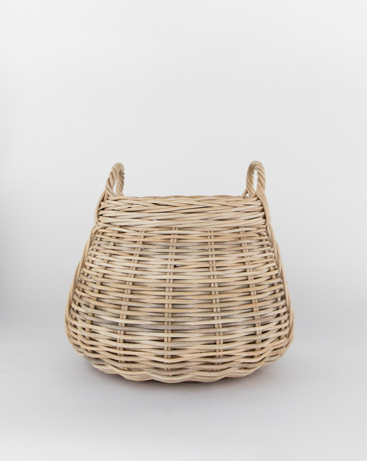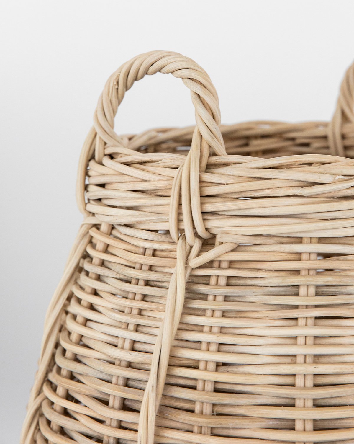 Crafted entirely of rattan and finished in an antique honey hue, the curved shape of our Amalfi Harvest Baskets adds a touch of softness wherever they’re placed. Filled with blankets or even a potted plant, the varying tones and intricately woven rattan complement anything placed inside their feminine form.