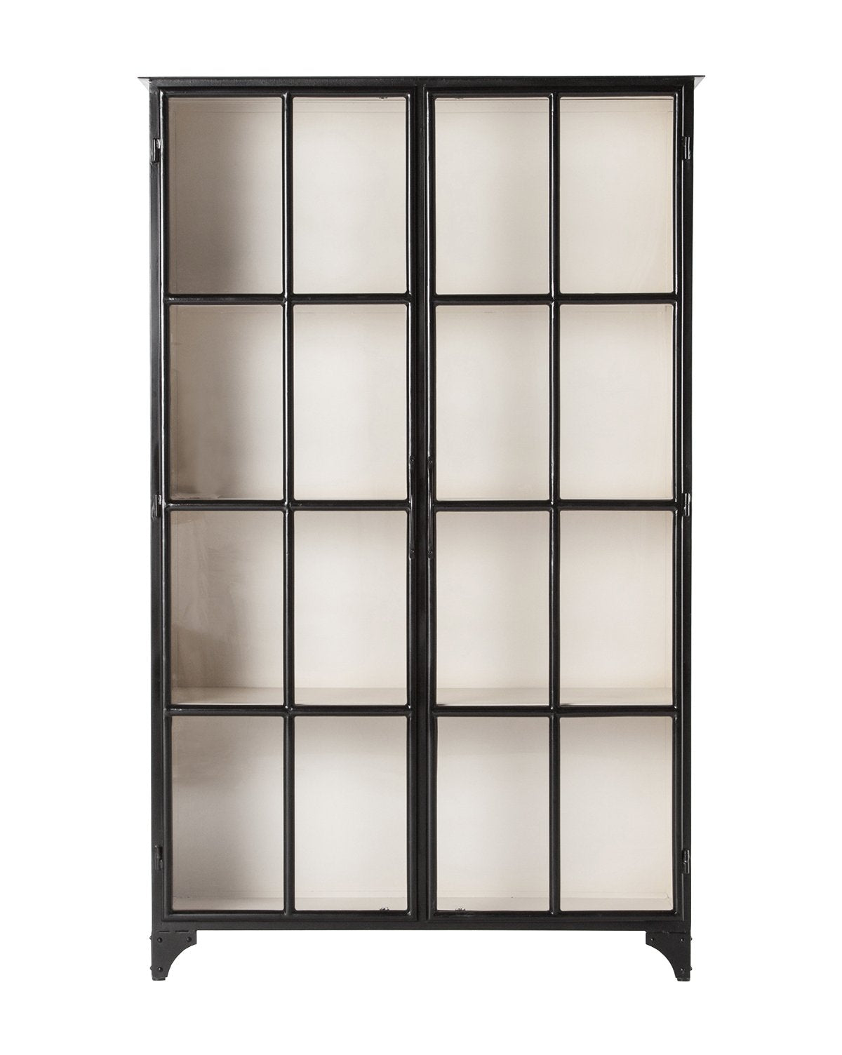 Our favorite feature of the Amalie Cabinet is its windowpane detail, allowing a stark white interior to contrast with a black iron frame. This transitional piece includes glass doors and ample shelves for maximum storage and display options.
