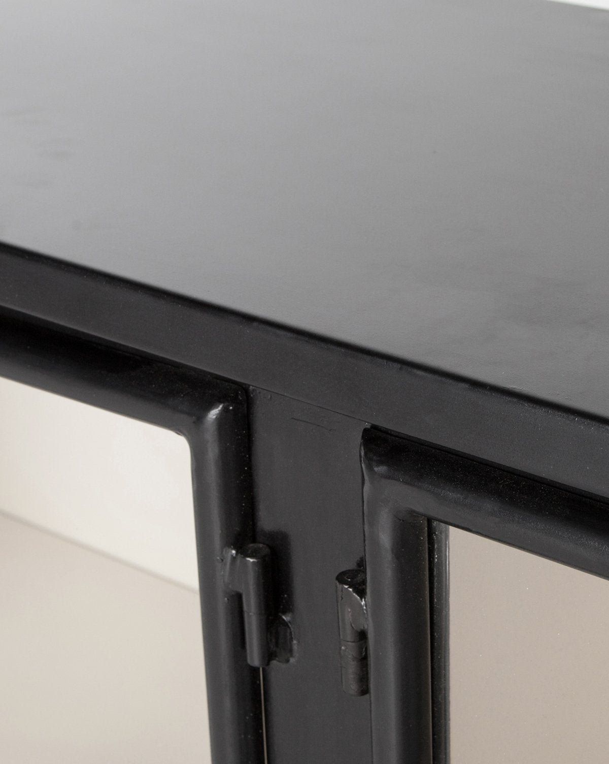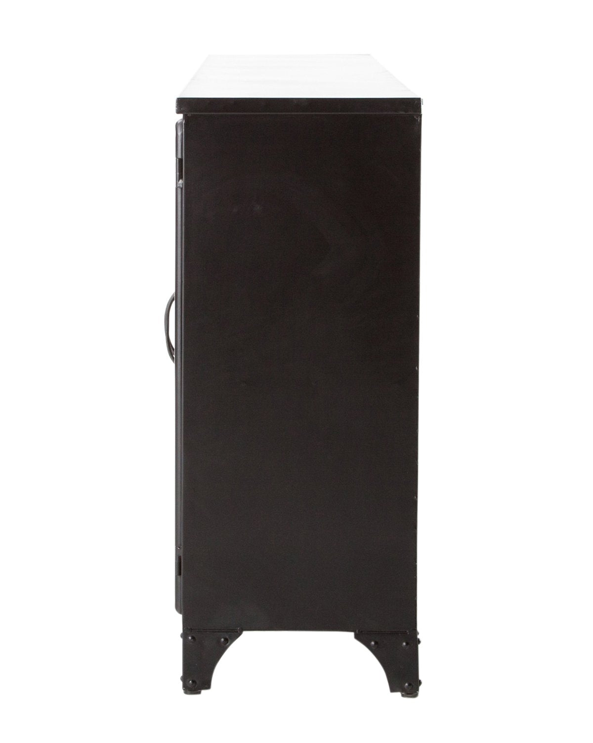 The Amalie Sideboard was designed for enhancing displays, while maximizing storage. A black iron frame is juxtaposed with a stark white interior. Windowpane details on its open-front glass doors create structure and sections to help you style with books, serveware, or both!