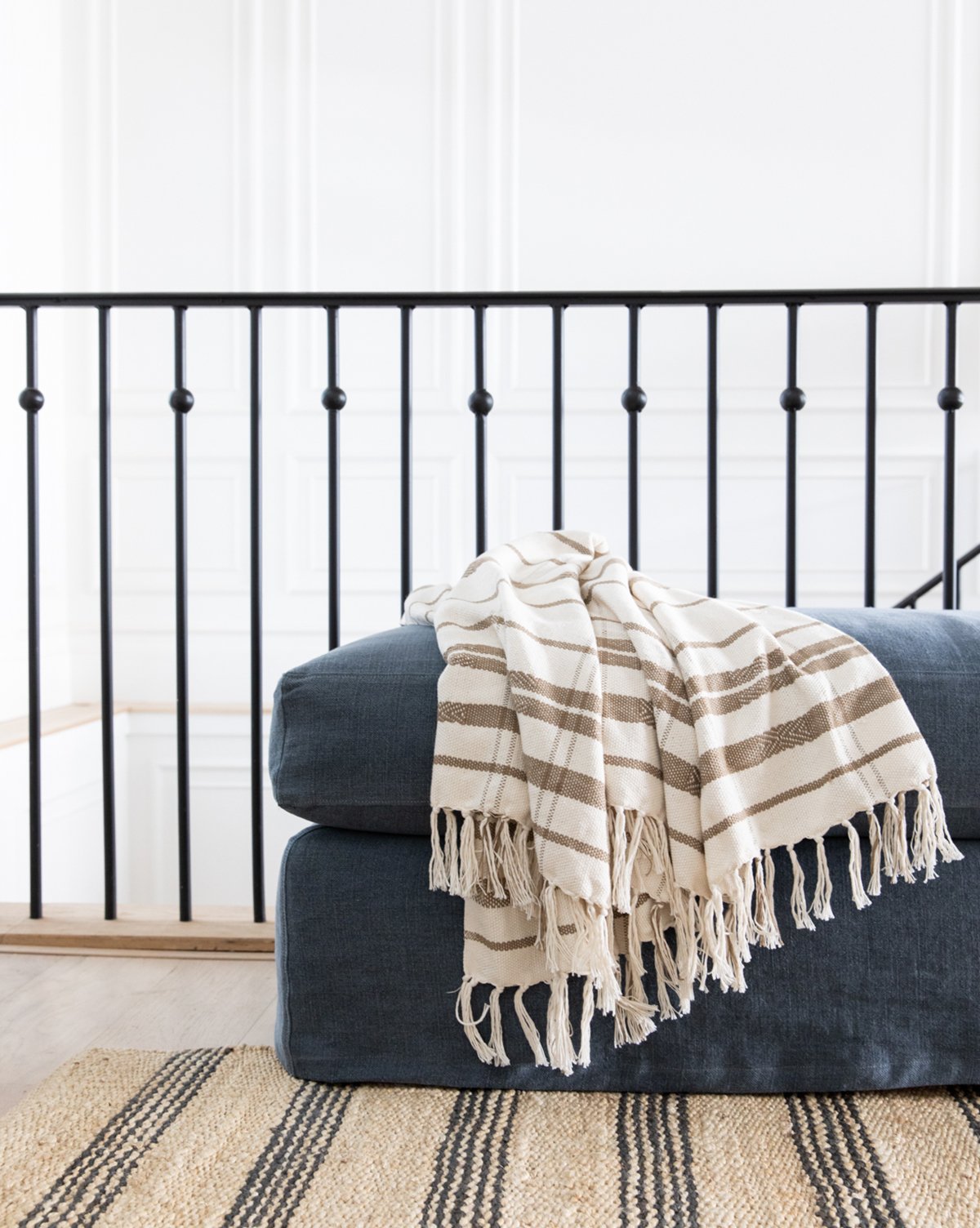 Handwoven by skilled artisans with decades of experience, the Amorie Throw brings warmth into your space throughout the years with its timeless and durable design. In two colorways, a visually intriguing stripe motif adds dimension wherever it’s placed, as a whimsical fringed edge finishes off the design.