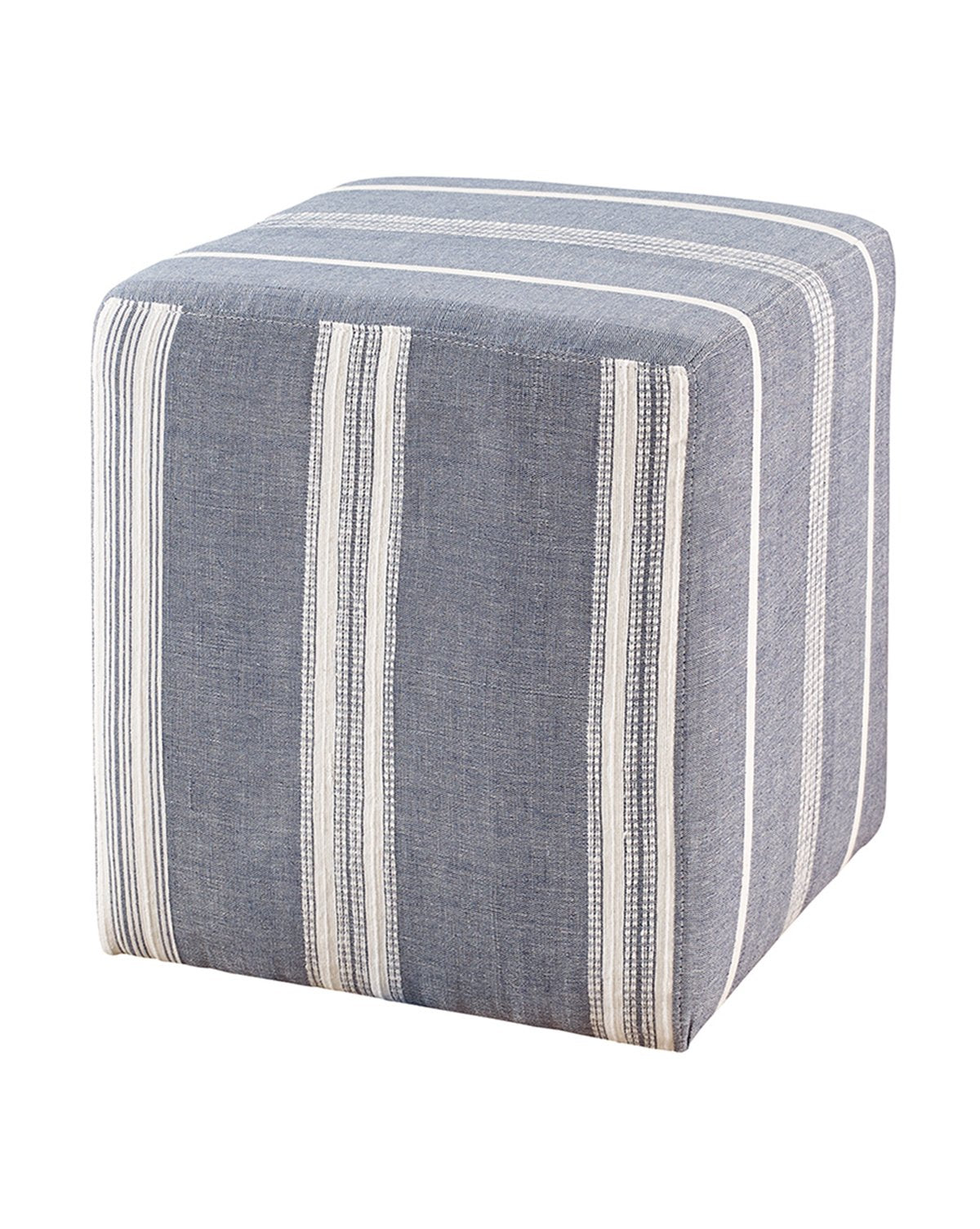 Blue stripes are always a good idea, and the Audrey Ottoman makes them even better with detailed stitching and crafted handwoven organic cotton throughout. This versatile ottoman or accent table makes for an easy home decor finishing touch.