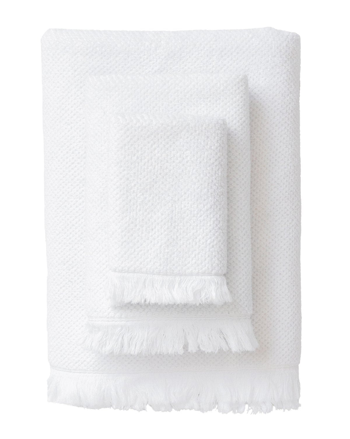 Made in Turkey, the cultural home of bathing, the Avilia Bath Collection’s quality is immediately evident in look and feel. Its finely detailed texture comes from 100% long staple Turkish cotton. Finished with frayed edges and a sewn in hanger loop on each bath towel, every detail in form and function was thoughtfully considered.