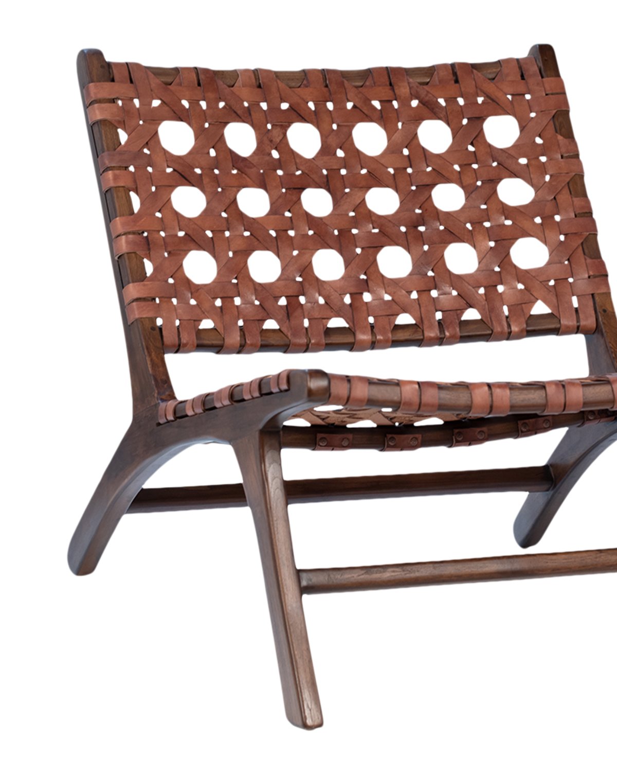 Featuring a woven leather seat and back, the Axton Chair makes a statement with immediate visual interest. Complementing the classic brown full grain leather is a teak crafted frame with smooth curves and a relaxed frame. Style this chair in pairs to create an eye-catching moment, and lend plenty of dimension to your existing living room design.