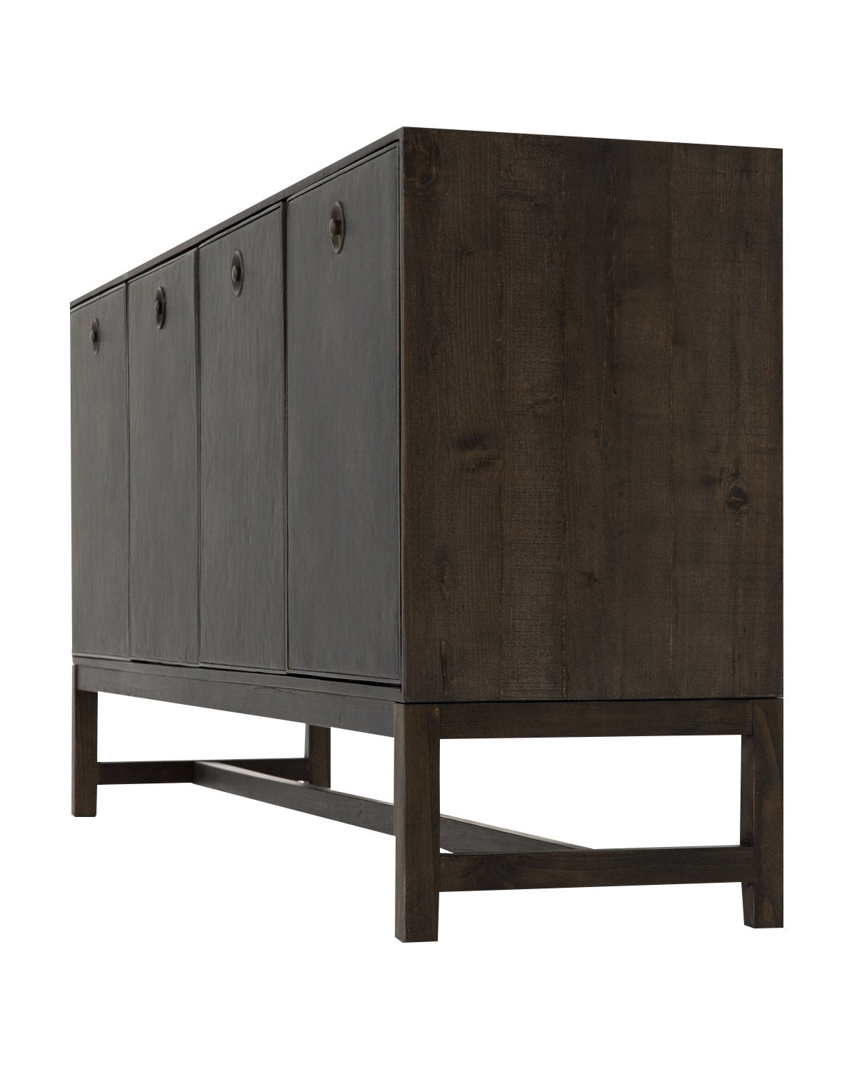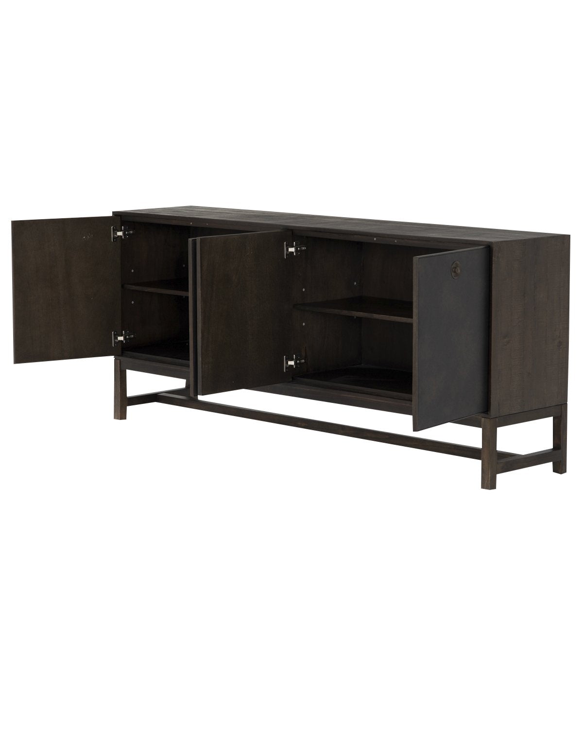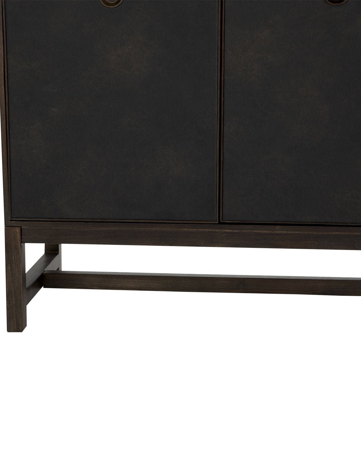 Mixed materials make a statement with the modern design of our Banks Sideboard. Oxidized sungkai wood crafts the sleek form of the sideboard, while black faux leather doors add a smooth, yet textural touch. Added to existing decor, this piece immediately updates the design of any space.