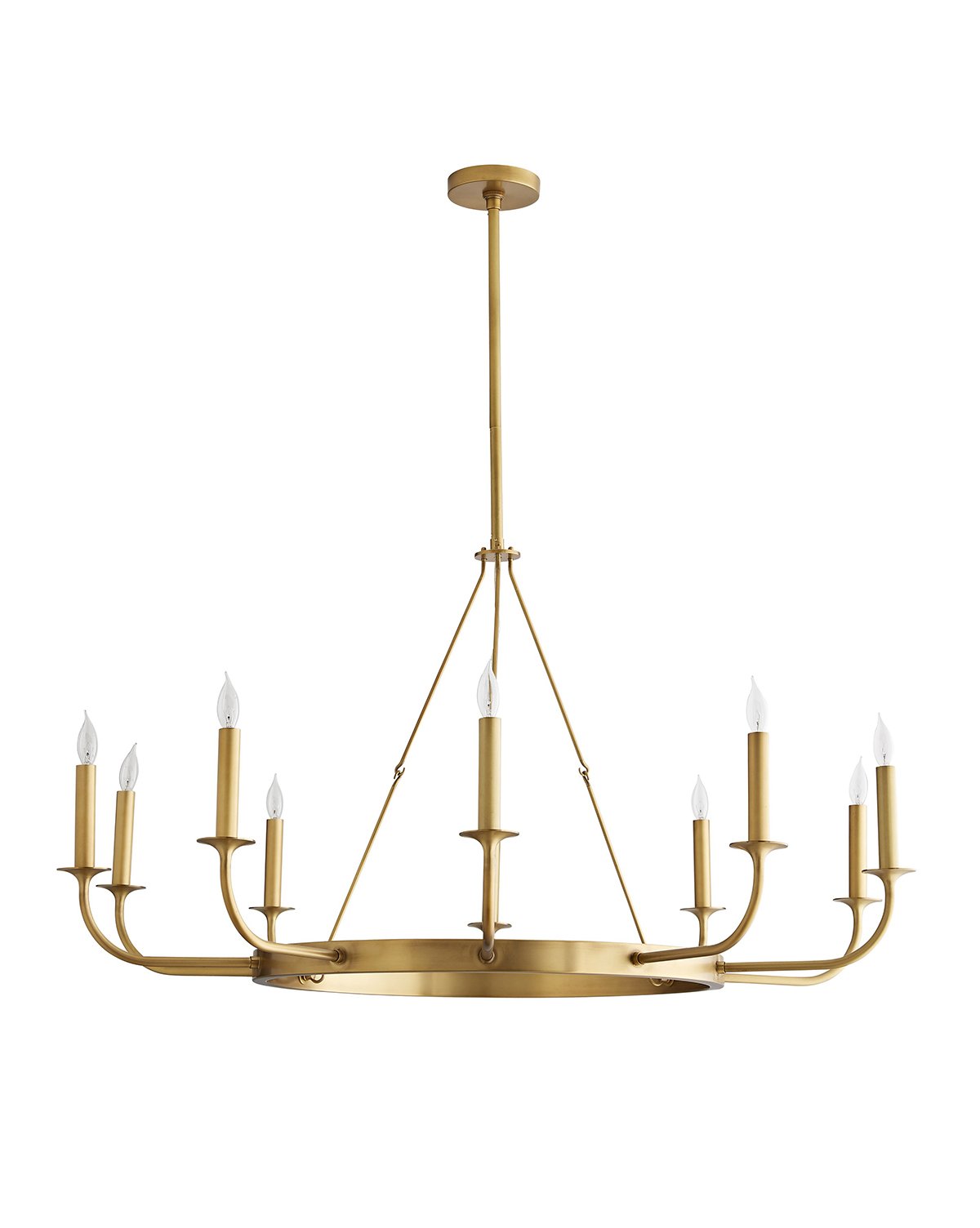 Traditional in form, our Berlin Chandelier features a classic silhouette and exposed bulbs. Ten bulbs provide maximum light, while a sophisticated antique brass finish adds additional shine placed over your dining room table or simply styled in an entryway.