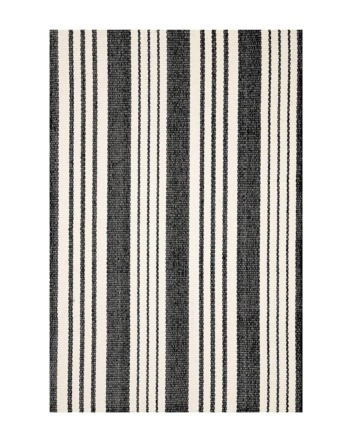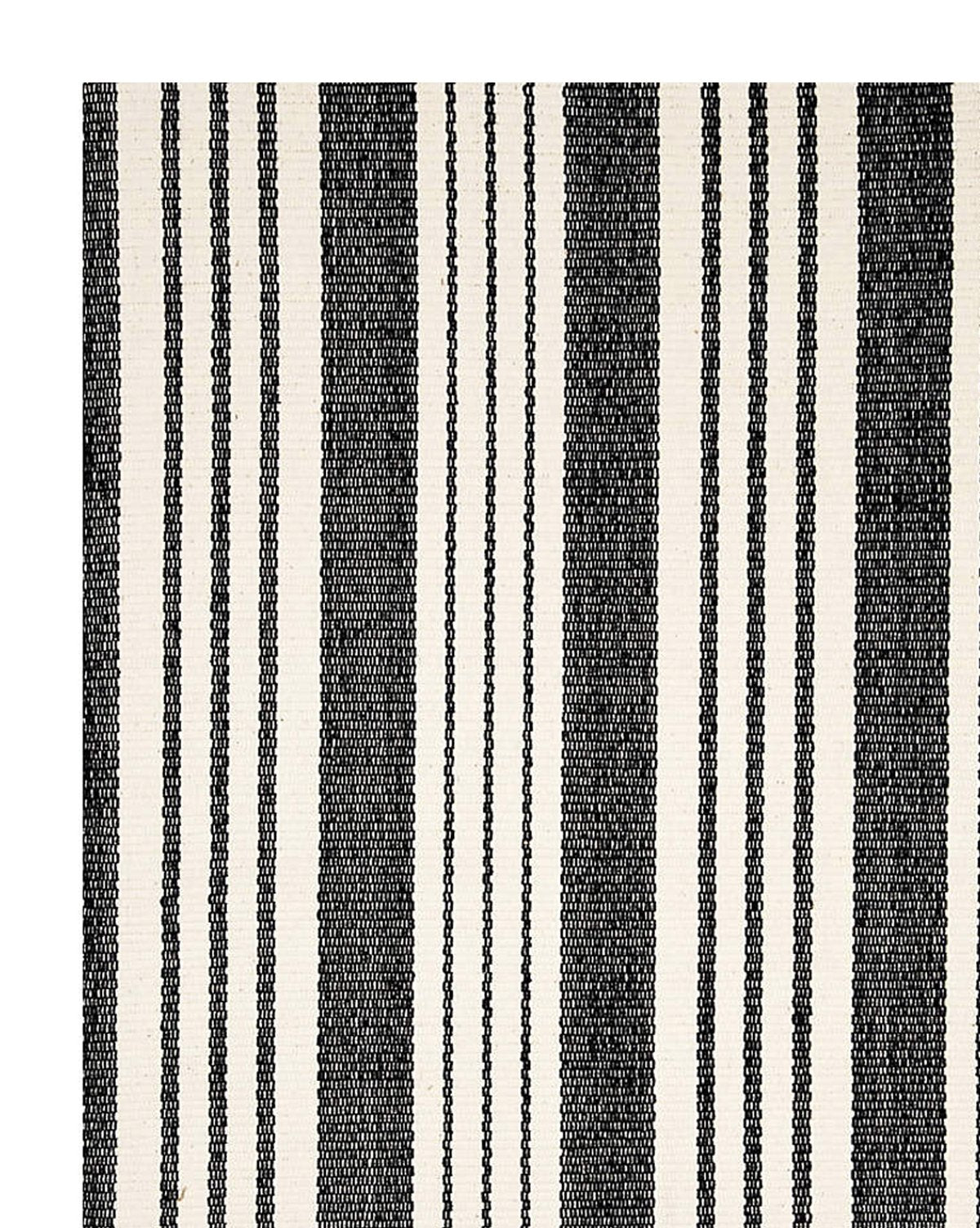 A durable, reliable, and eco-friendly indoor/outdoor rug in classic stripes of black and ivory.
