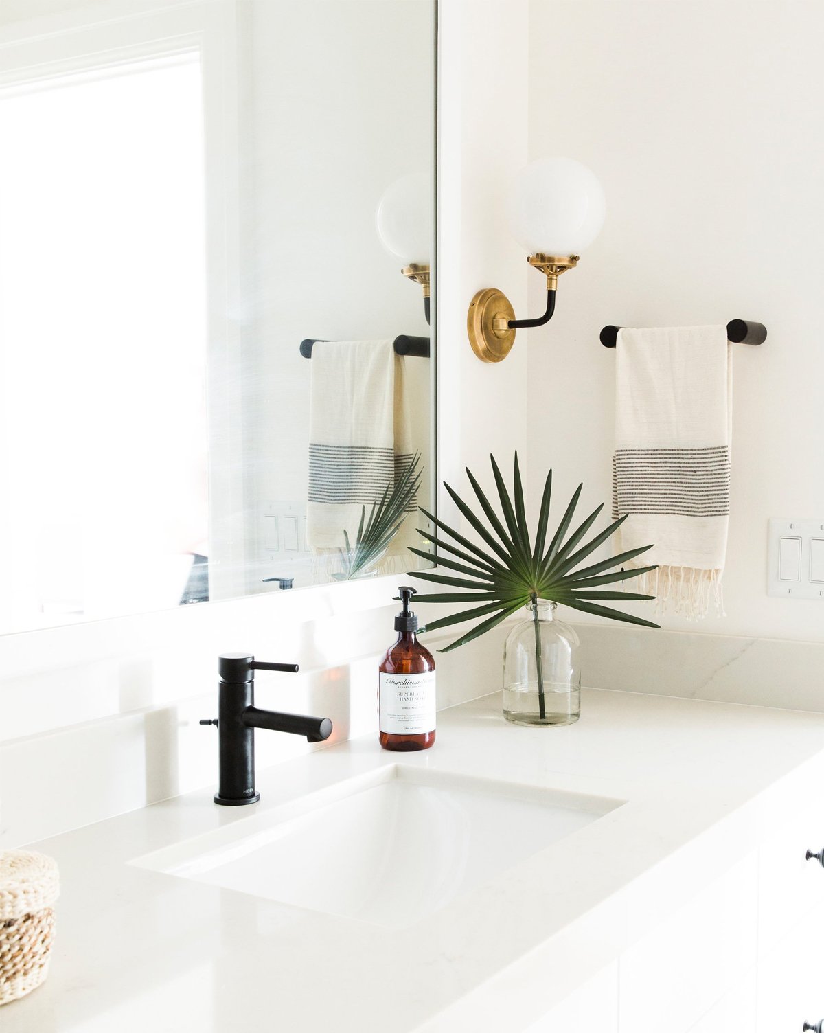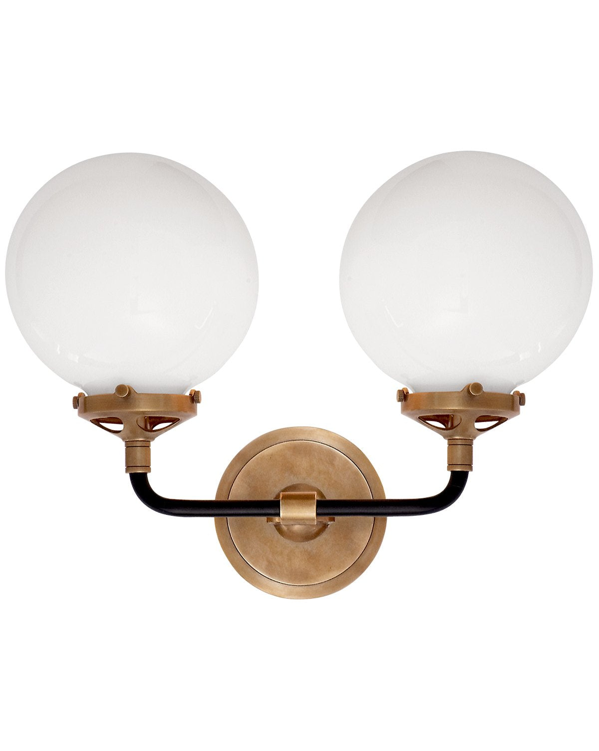 This bistro double light sconce in hand-rubbed antique brass and black gives off a mid-century modern, cool vibe. Its white glass glows when illuminated and will add so much character to your space.