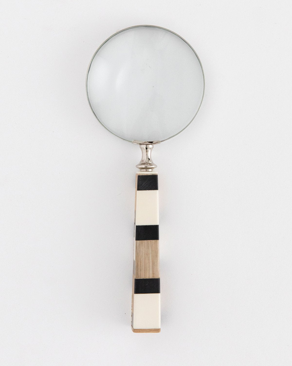 The perfect accessory to any desk or coffee table, the Blocked Magnifying Glass features an intriguing mix of materials in its timeless design. With eye-catching black, white and neutral tones this magnifying glass is not only functional, but also adds modern style wherever it’s placed.