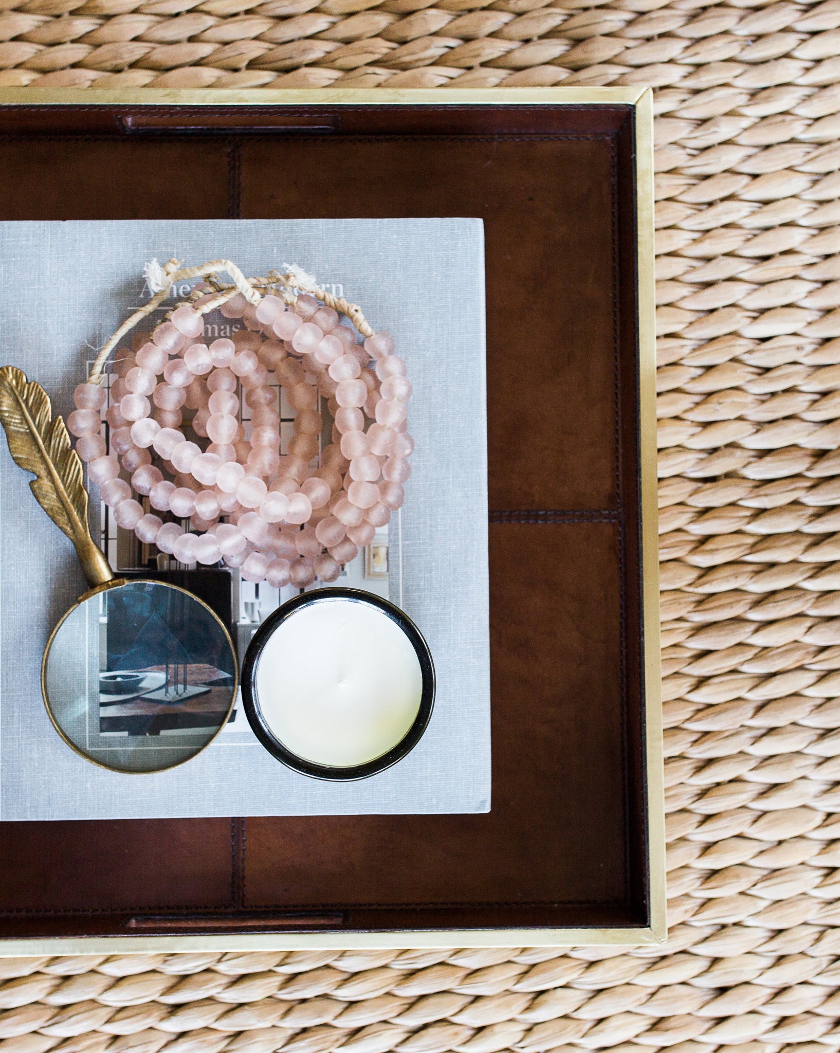 We love our glass beads because they look beautiful anywhere you lay them. They come in shades of blue, gray, pink, and deep green. Each brings a coastal but casual feel to your coffee table or open shelving.