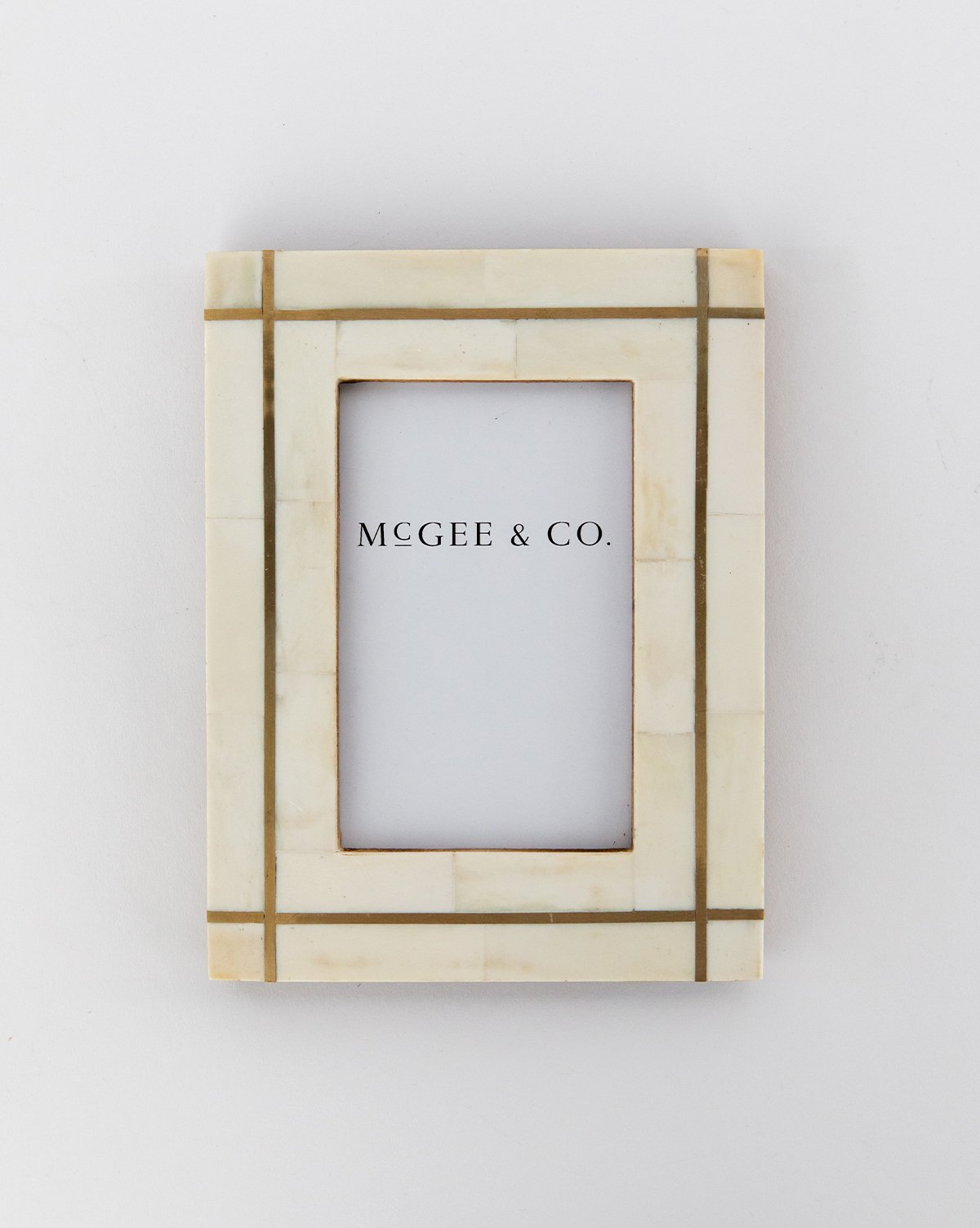 With a unique juxtaposition of brass and bone, this elegantly crafted frame brings your favorite memories to the forefront of your space in sophisticated style. Placed in your built-ins or styled on your nightstand, let its refined aesthetic finish off your room with an added layer of dimension.