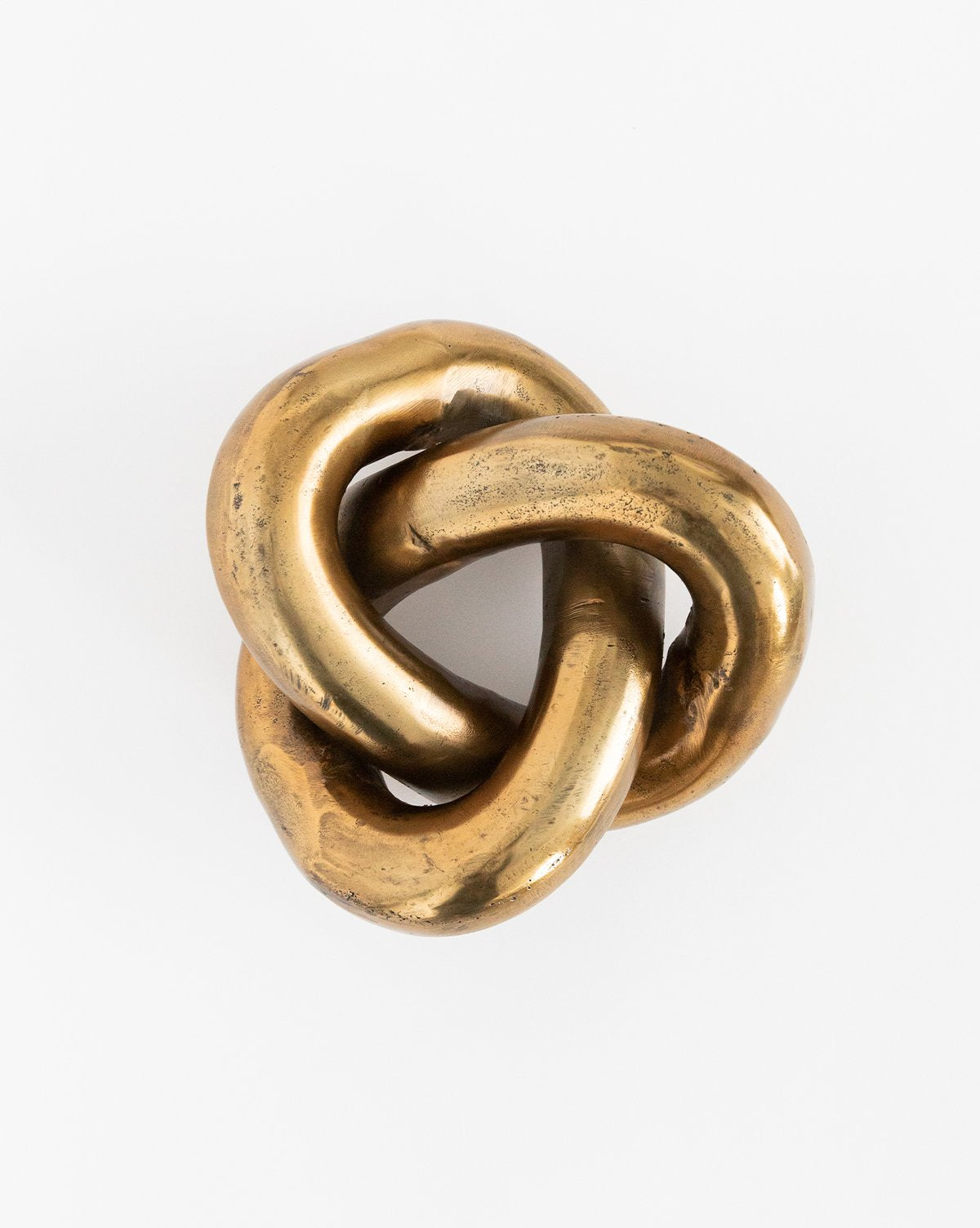 With smooth curves and an intriguing shape, the Brass Infinity Knot takes sculptural and modern decor to a whole new level. Cast from high-quality aluminum, this piece brings contemporary style to your space year after year.